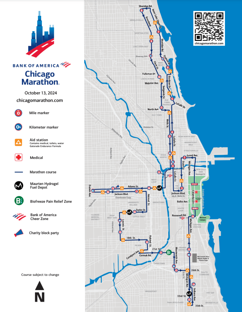 2023年跑完waterfront半马之后热情非常高涨,第二天就报名了Chicago Marathon抽签。原本没想着能抽中(毕竟是国际六大马拉松),12月的早上突然收到了信用卡扣款的提醒,心情既兴奋又恐惧,无法想象21km之后的路程。